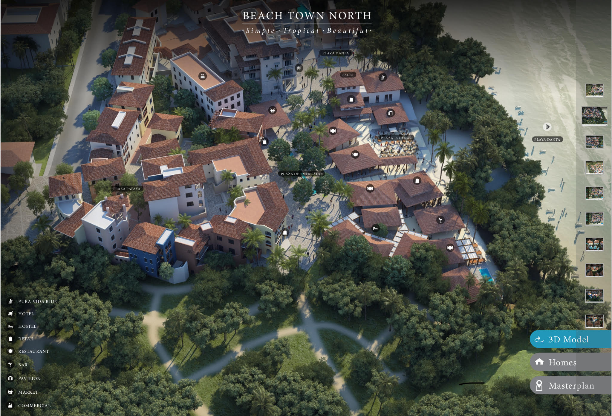 Beach Town North is located along the beach adjacent to the beloved Pura Vida Ride and Plaza Danta. In the center of the neighborhood is Plaza del Mercado, a large and beautiful market plaza with fountains. East of Plaza del Mercado are three gorgeous buildings designed by Castillo Arquitectos. These buildings feature retail space on the ground floor and fantastic ocean-view flats on the upper two floors.