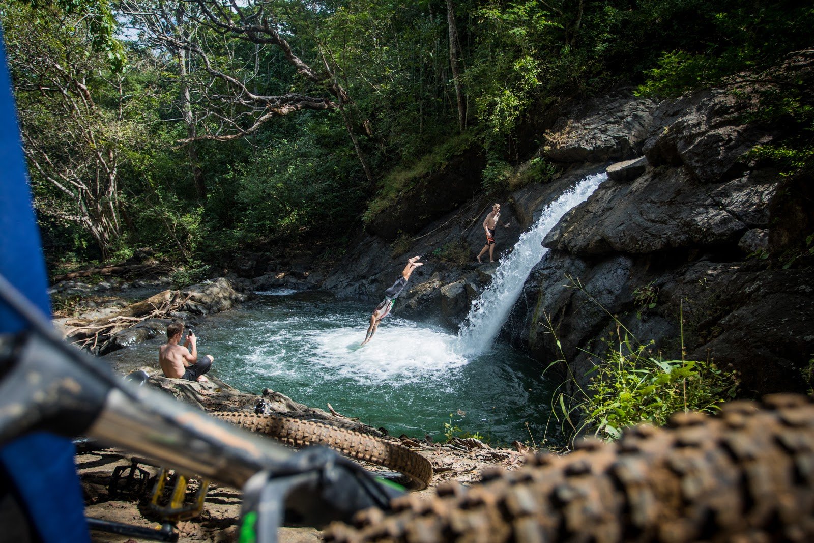 As a whole, the trip takes a full day (estimated at 6 or 7 hours), and is generally considered an advanced trip due to the physical challenge of a long ride. However, for more experienced mountain bikers the trip through the beautiful hills and valleys of Guanacaste and the reward of a cool, clear, and hidden waterfall at the end are well worth the ride.