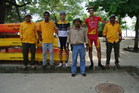 Today we were honored to have 2012 La Ruta de los Conquistadores winner Paolo Montoya, visit Las Catalinas. La Ruta is one of the most famous and difficult mountain bike stage races in the world. It is held annually in Costa Rica and the route route follows the west to east route of the 16th Century Spanish Conquistador Juan de Caballon from the Pacific to the Atlantic. This year's race, the 2oth anniversary, was held just the other day - November 1 to 3. Paolo also won in 2004. His father, Rodrigo Montoya won in 2002 and 2003.