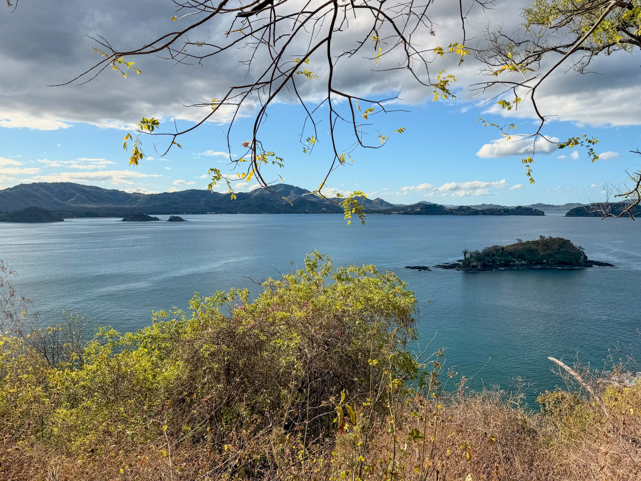 After stopping at the lookout, continue along the J Trail until you reach C1 and C2. From there, hike all the way to C4, where you will find a bench with a privileged view of Punta Guachipelín and the Pitahaya Islands to the left. This perspective is unique, as you are looking directly over the cove of Punta Guachipelín.
