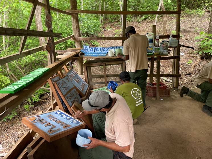 Markers were strategically placed along each trail to make navigation simpler. Think of them as easy to use coordinates made up of the trail letter and the station number, exactly as shown on the map. And there is a detail that quietly carries the origin story of the trails. Every sign was handmade by the Agroforestales team, carved and painted using salvaged wood from the farm and recycled materials. It is a small but meaningful reminder that more than a dozen hands shaped these paths with care, one section at a time.