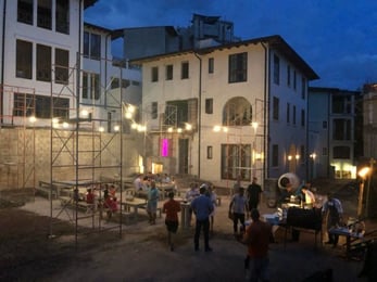 Last night we had a fun event pop up in Plaza Celaje, which is just behind the Beach Club. It is an area that is nearly finished with construction, the plaza framed by a number of new homes. With two of the home owners in town, a pot luck dinner came together there. The cement mixer made for a nice cooler.