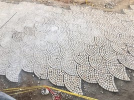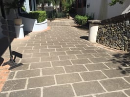 Last week we discussed the cobblestones that are going to be laid down outside of the Santarena, but there is another aspect to the streets around the hotel that is interesting. Currently, there are three main types of hardscape (the material that makes up the streets) in Las Catalinas: the Cantera Stone blocks, red-brown bricks, and cobblestone, each of which bring their own style and character to the street.